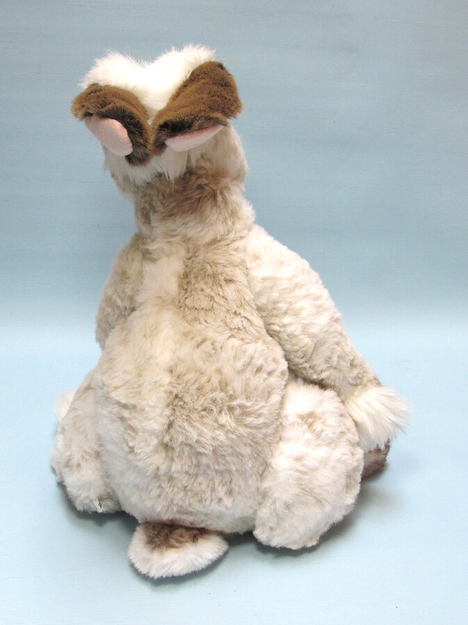 Lian is made from curly, feather finish English Mohair. He has a double jointed neck, handmade leather nose, glass eyes backed by brown ultrasuede, handsewn Mohair eye patches, and handmade polymer claws. Lian also has a wrist joint that adds great flexibility in posing, and leather and ultrasuede foot pads. He is pellet filled and weighted and is 20″ tall